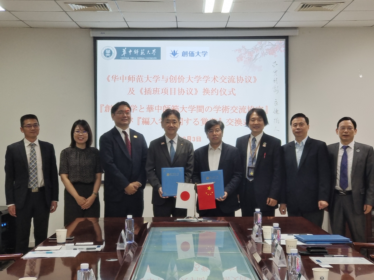 下午,举行了以“数字化转型与高等教育发展”为主题的校长论坛。小山内副校长就创价大学的教育研究等做了报告。此外,两校还签订了关于编入学的交流协定。华中师范大学郝芳华校长、彭双阶副校长也表示希望以签订交流协议为契机,进一步加深两校间的交流与合作。